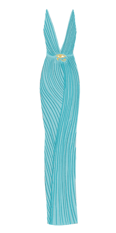Our muse Cleopatra led us down the path of expensive aesthetics, including draped shoulders, molten belts and sophisticated prints inspired by the Egyptian Amarna art all those years ago.